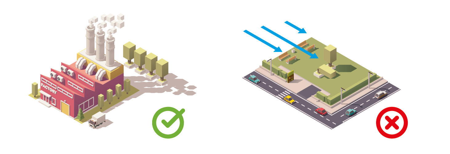 В местах "застоя" воздушных масс не рекомендуется строить парковку, так как будет наблюдаться резкое ухудшение состояния воздуха.