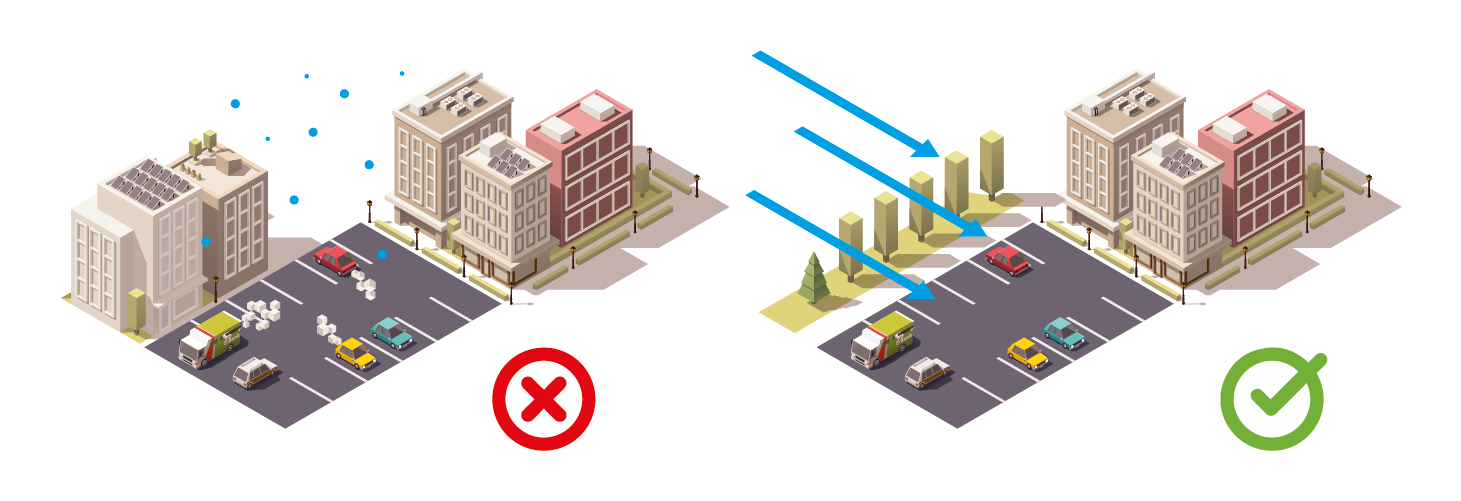 В местах, где присутствует сильный источник пыли рекомендуется высаживать деревья и кустарники с большой площадью листа.