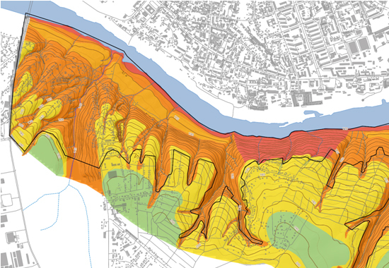 В ходе исследования территории помимо экологического значения были выявлены и другие ограничения. Во-первых, большая часть территории характеризуется достаточно активным рельефом и попадает в расчётные зоны затопления паводковыми водами. Во-вторых, естественные городские поймы Калуги являются знаковыми культурными ландшафтами.